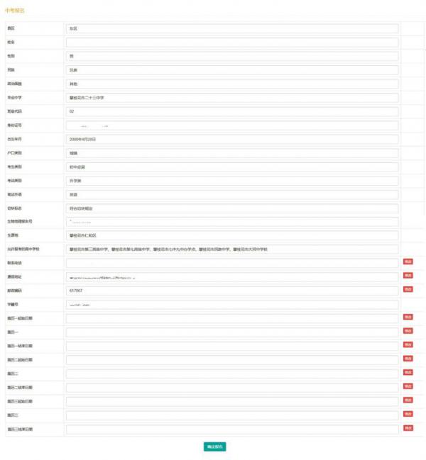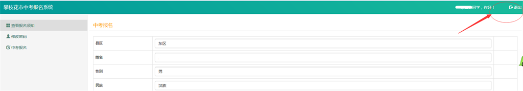 5、关闭网上报名的浏览器页面后,考生应再次登录网报系统,点击“中考报名”按钮,检查考生所填各项信息是否完整准确。如有问题,及时解决。