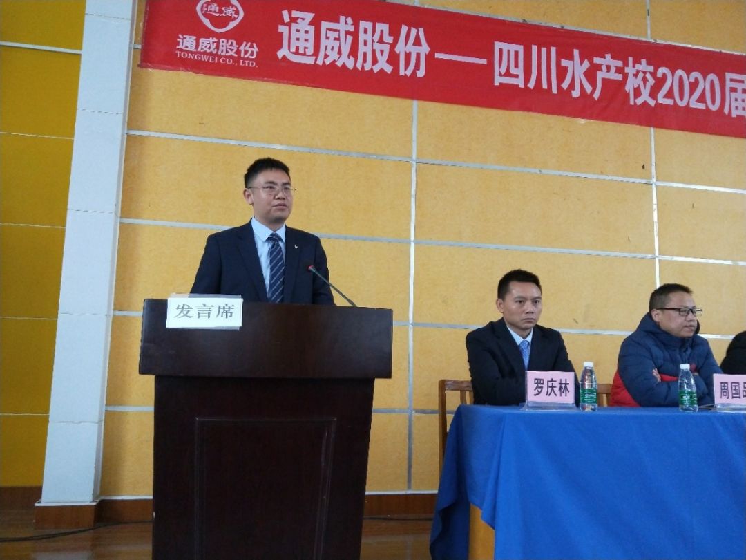 12月14日下午,“2020届通威班”在四川省水产学校举行了隆重的开班仪式。四川省水产校党委书记熊小锋、通威股份副总裁兼华西战区总裁宋刚杰、通威股份水产市场部部长贾光文等出席仪式。