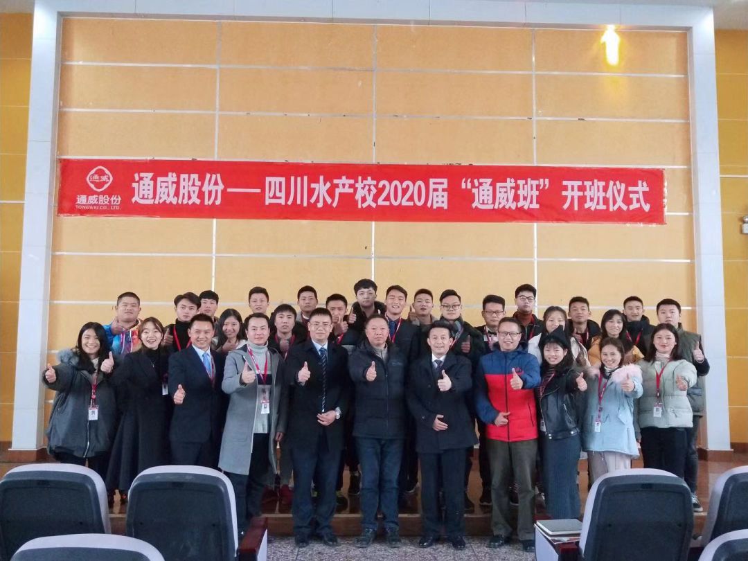 为贯彻落实《国家中长期教育改革和发展规划纲要(2010-2020)》、《国务院办公厅关于开展国家教育体制改革试点的通知》等有关文件的精神,通威股份与四川省水产学校开展深度校企合作,决定在四川水产学校郫县校区二年级学生中组建“通威班”,旨在为通威培养和储备一批热爱行业、具备专业能力的水产人。此前,经过层层面试,共选拔出包含水产养殖、畜牧兽医、动物防疫与检疫、食品生物技术、饲料与营养科学专业的学生23名。