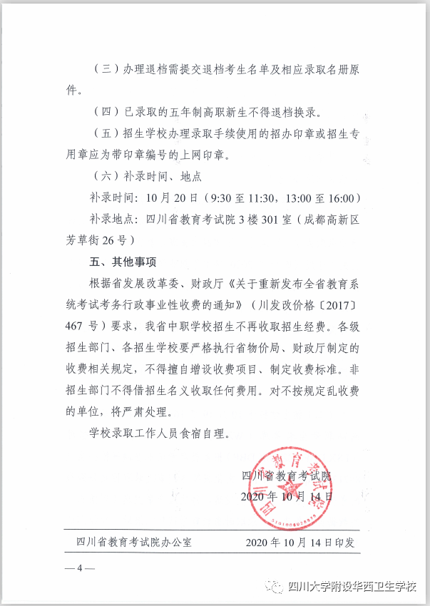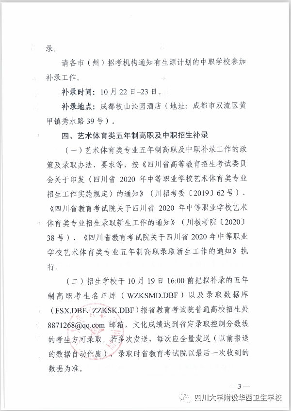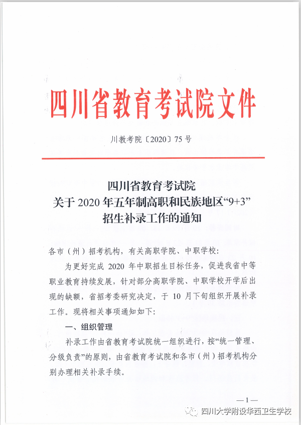 二、附:四川省教育考试院关于2020年五年制高职和民族地区“9+3”招生补录工作的通知