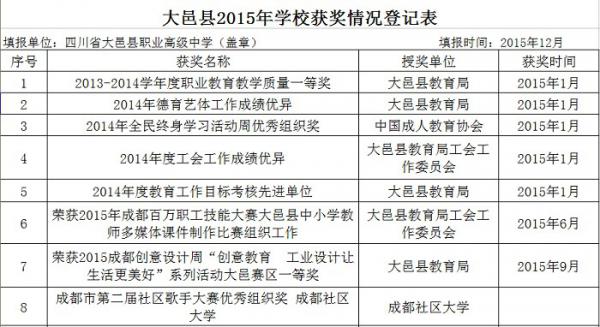 | 大邑县2013年学校获奖情况登记表 |