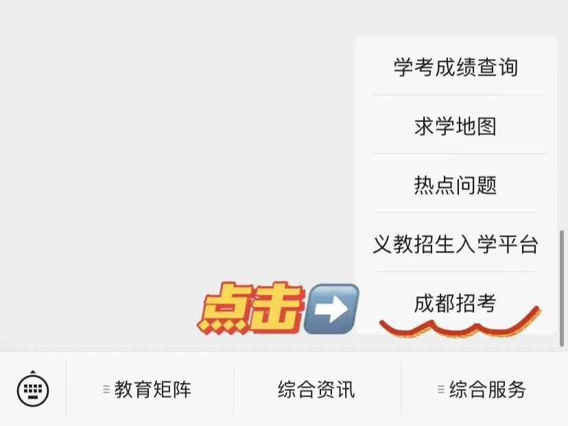 点击底部菜单栏【综合服务】-【成都招考】