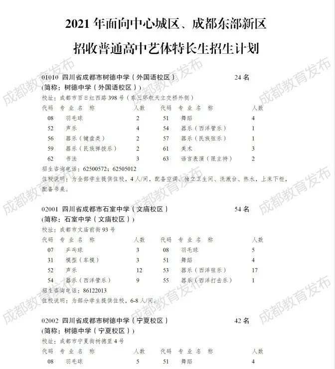 - 2021-06-04 2021年成都市普通高中艺体特长生招生计划发布