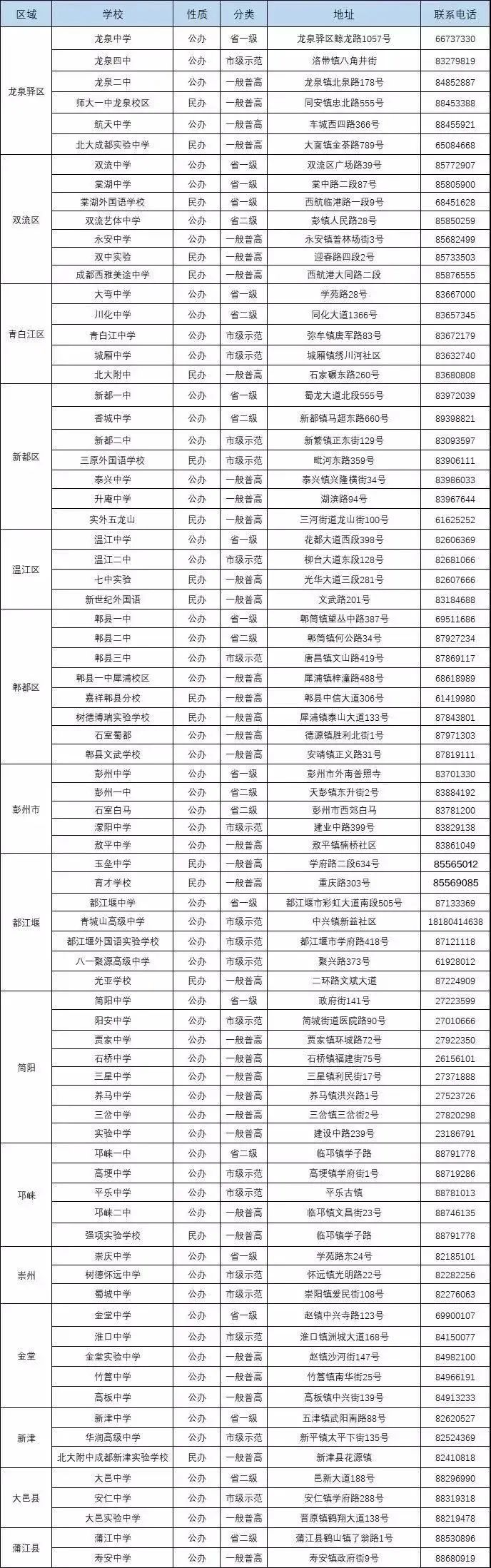 以上就是小编为大家整理的“2021年成都中考 | 成都153所高中汇总!分区域详细整理学校性质、分类、地址电话!”,内容图文信息来自网络,版权内容归原作者所有,本文仅做分享,如有侵权,请联系后台,我们将及时删除。