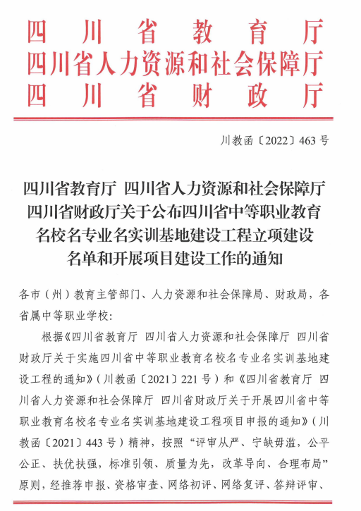 学院成功立项四川中等职业教育“三名工程”建设单位,国家级一体化专业建设试点单位,获得四川省技工教育师资队伍建设先进集体、成都市技能人才培育突出贡献学校等荣誉。学院顺应地方政府、主管部门加强人才工作、扩大技能人才培养规模的需求,牵头组建“成都市技能人才发展促进会”“成都经开区技能人才培育联盟”,并作为上述两个协会的会长单位组织开展技能人才培养工作。