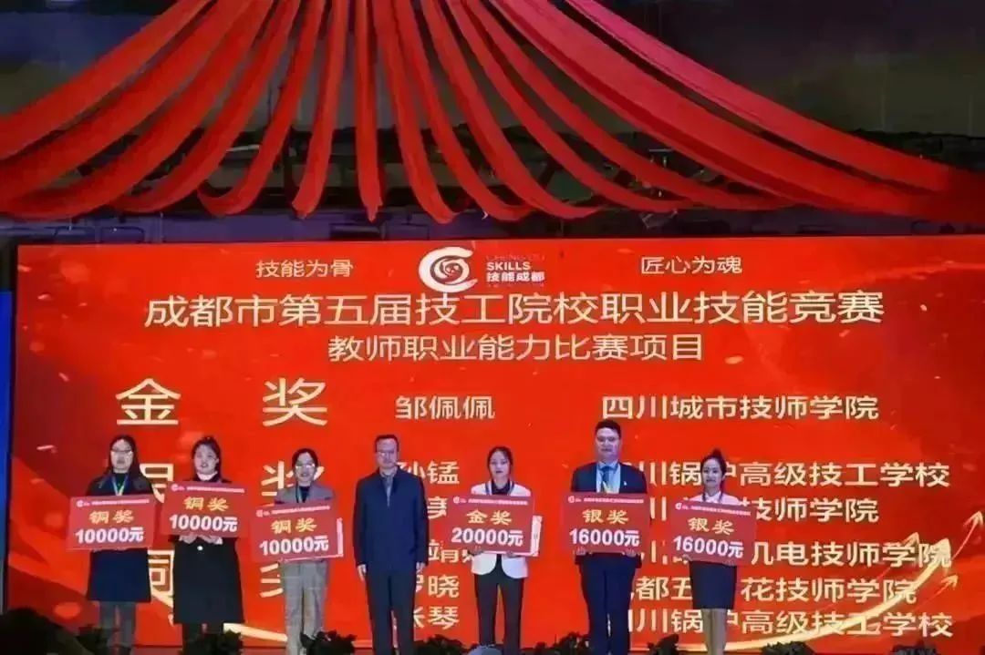 学院以赛促教、以赛促学、以赛促练。承办了四川省第二届技工院校教师职业能力大赛、一带一路暨金砖国家技能发展与技术创新大赛、四川省第二届教师教学能力大赛、成都市第三届技工院校技能竞赛、成都市第三届养老服务技能竞赛、龙泉驿区第二届农民工技能大赛等。形成了“校赛、市赛、省赛、国赛”师生技能竞赛体系,梯队培养,逐级选拔,师生获得市级以上职业技能竞赛奖项68项(国家级一等奖3项、二等奖5项、三等奖3项、优秀奖2项;省级一等奖8项、二等奖7项、三等奖5项,优秀奖1项;市级一等奖7项、二等奖13项、三等奖12项,优秀奖2项)。