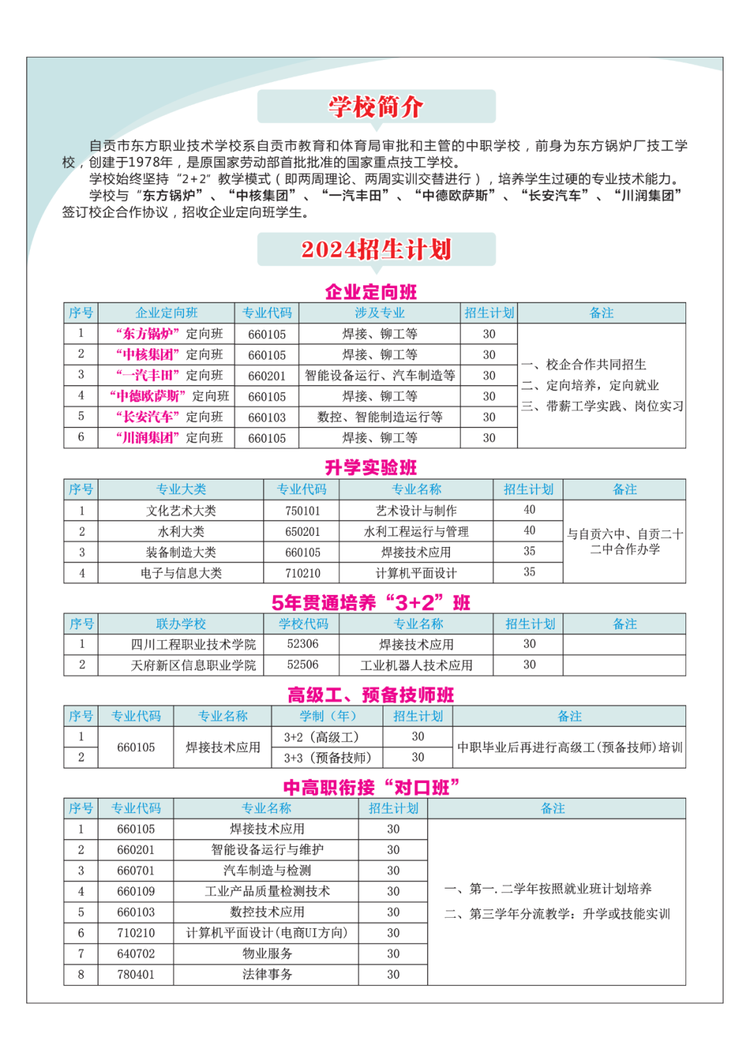 - 2025-09-27 自贡市东方职业技术学校2024招生简章(企业定向班、3 2五年贯通培养班、升学实验班等)