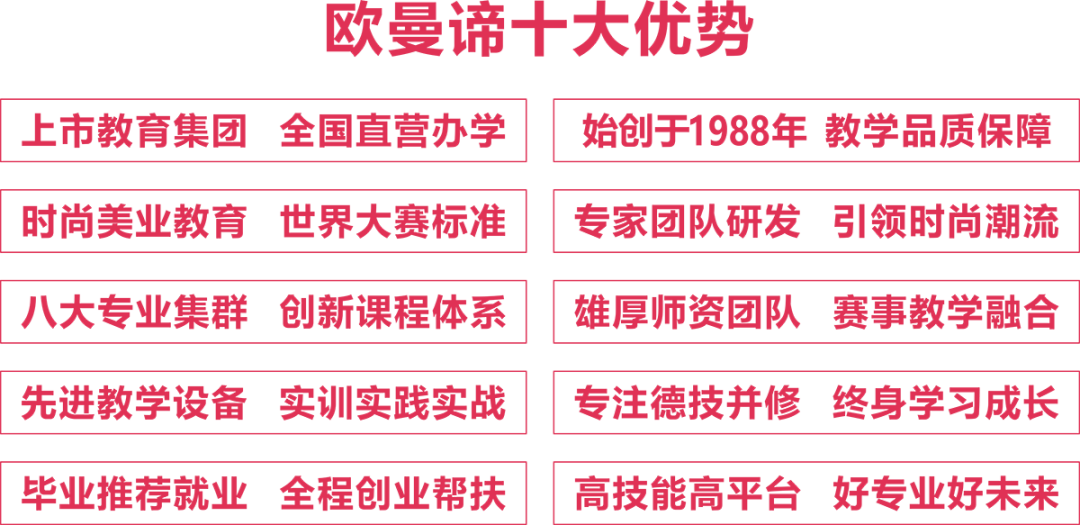 成都欧曼谛(On-mind)隶属于中国东方教育集团(港股:00667HK)始创于1988年,专注于职业教育,集时尚、美丽、健康于一体的现代化时尚美业教育品牌,全国直营连锁。