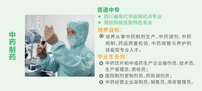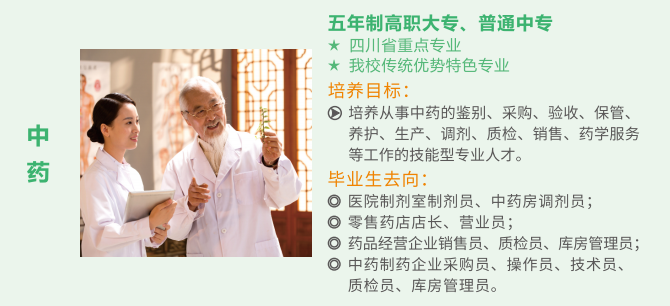 升学渠道3:成人本专科。我校系中国药科大学、成都中医药大学、四川中医药高等专科学校的成人本科、专科教学点,学生可通过全国成人高考取得本专科文凭。