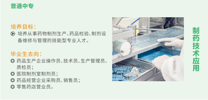 专业设置紧紧围绕医药行业和大健康产业。现国家高度重视大健康产业和中医药事业发展,专业人才紧缺,药校学子未来可期。