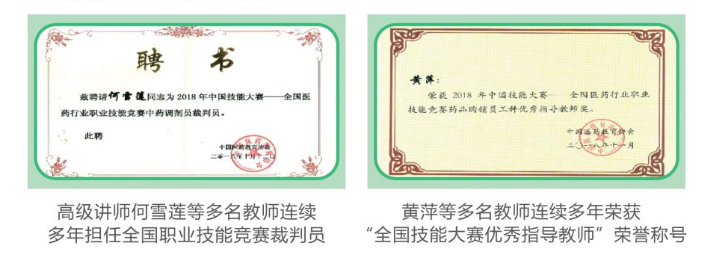 学校积极探索施行“岗课赛证”育人新机制,连续举办10届专业技能大赛,是全省首批"1+X" 证书(药品购销员)考评试点单位,学生综合素质和学校办学实力显著提升。近年来,在四川省乃至全国各类竞赛中,捷报频传,喜讯连连。