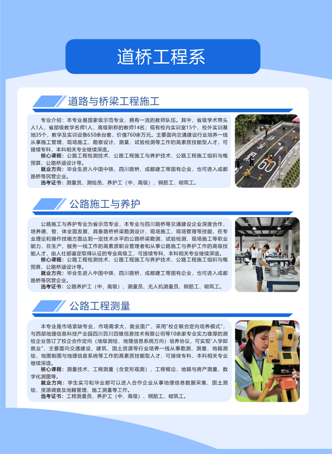 - 2025-10-15 四川交通运输职业学校五年高职班、3 4中本衔接班、特色定制班、高级技工班、预备技师班简介