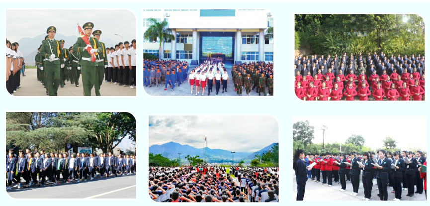 内务管理军事化、食堂就餐军事化、校园行走军事化养成令行禁止、学会服从、学会规划的好习惯。