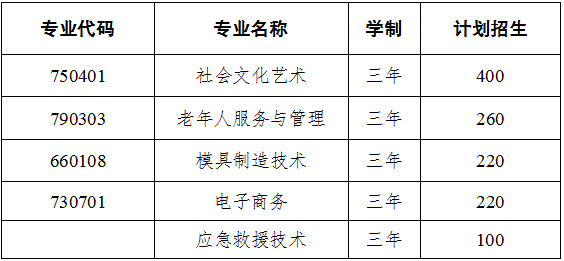 “社会文化艺术”设有舞蹈、钢琴、音乐、美术、手工、演讲与口才等专业课程;“老年人服务与管理”专业设有基础护理、健康评估、光波理疗、传统康复、行政管理等专业实训室;“电子商务”专业有平面设计、网络营销、财经商贸实训、网络直播等实训室;“模具制造技术”专业设有钳工、机械加工、模具CAD等专用实训室。“应急救援”专业是以培养学生安全生产应急管理、事故应急与救护、应急预案编制与管理、风险防范与应急管理、抢险救援指挥与技术、现代应急管理技术与系统、灾害事故现场急救等。