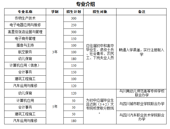 - 2024-01-06 通江县职业高级中学2021年招生计划