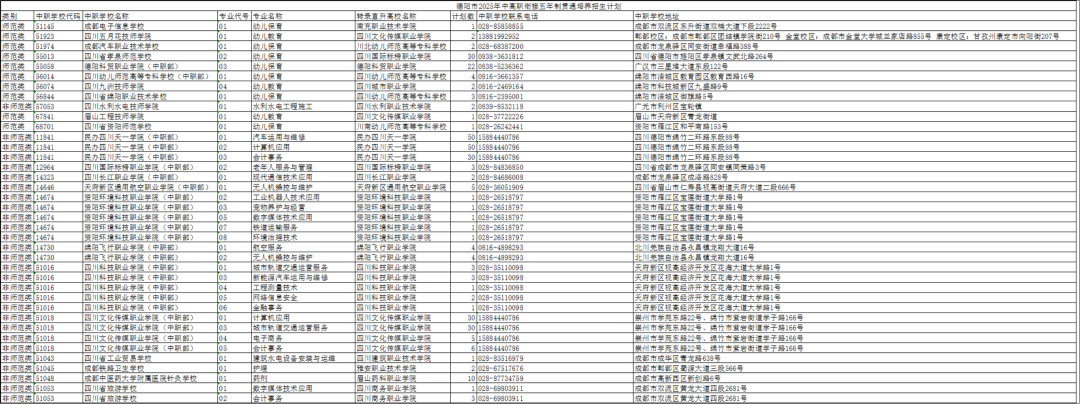 - 2025-10-10 德阳市2025年中高职衔接五年制贯通培养招生计划