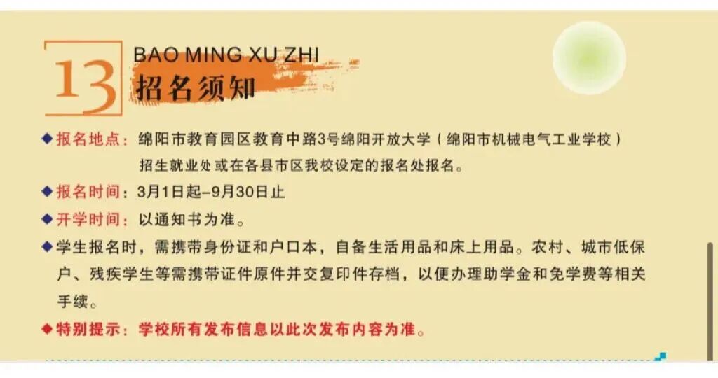- 2025-10-10 绵阳开放大学(绵阳市机械电气工业学校)2024年招生简章