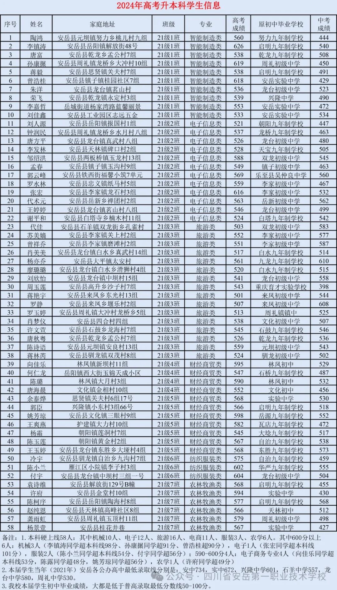 - 2023-12-30 四川省安岳第一职业技术学校2023年招生录取分数线