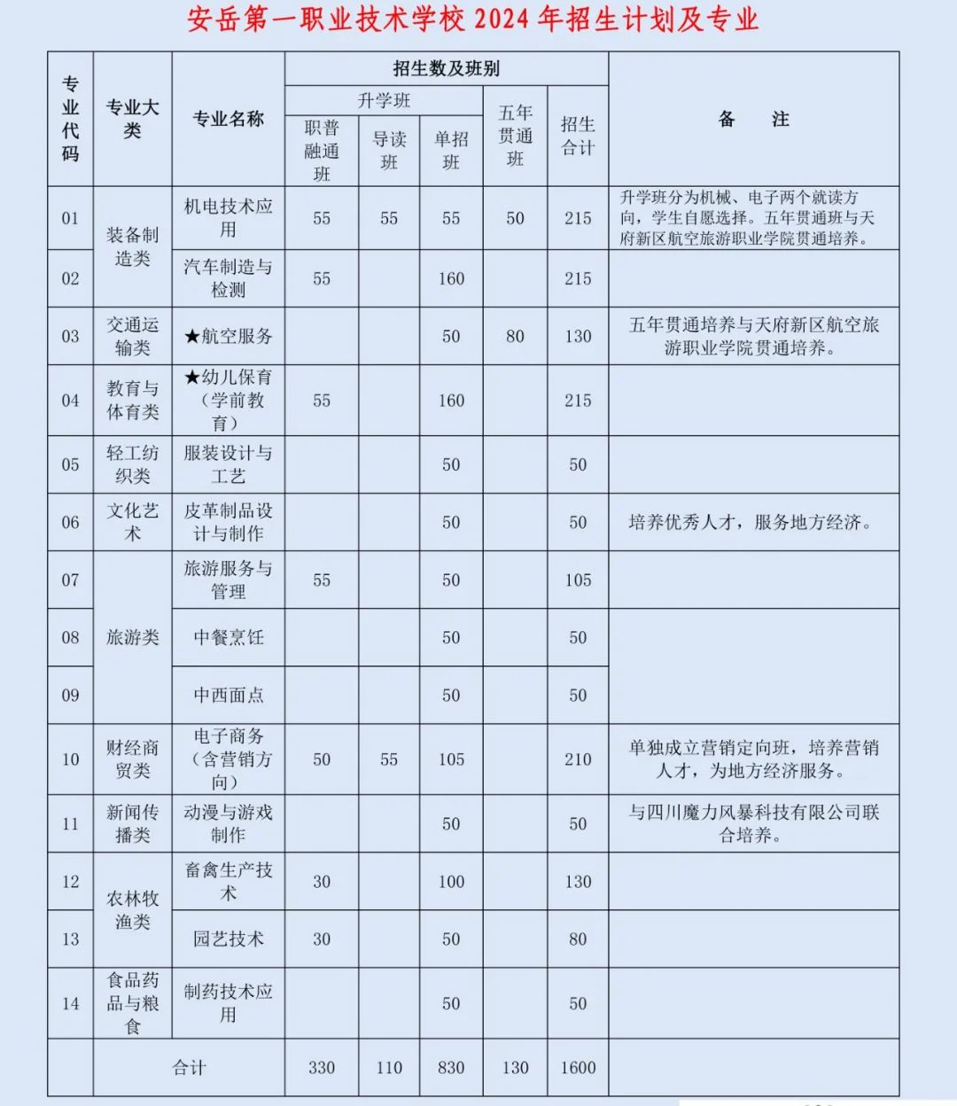 - 2025-10-18 安岳第一职业技术学校2024年开设专业和招生计划