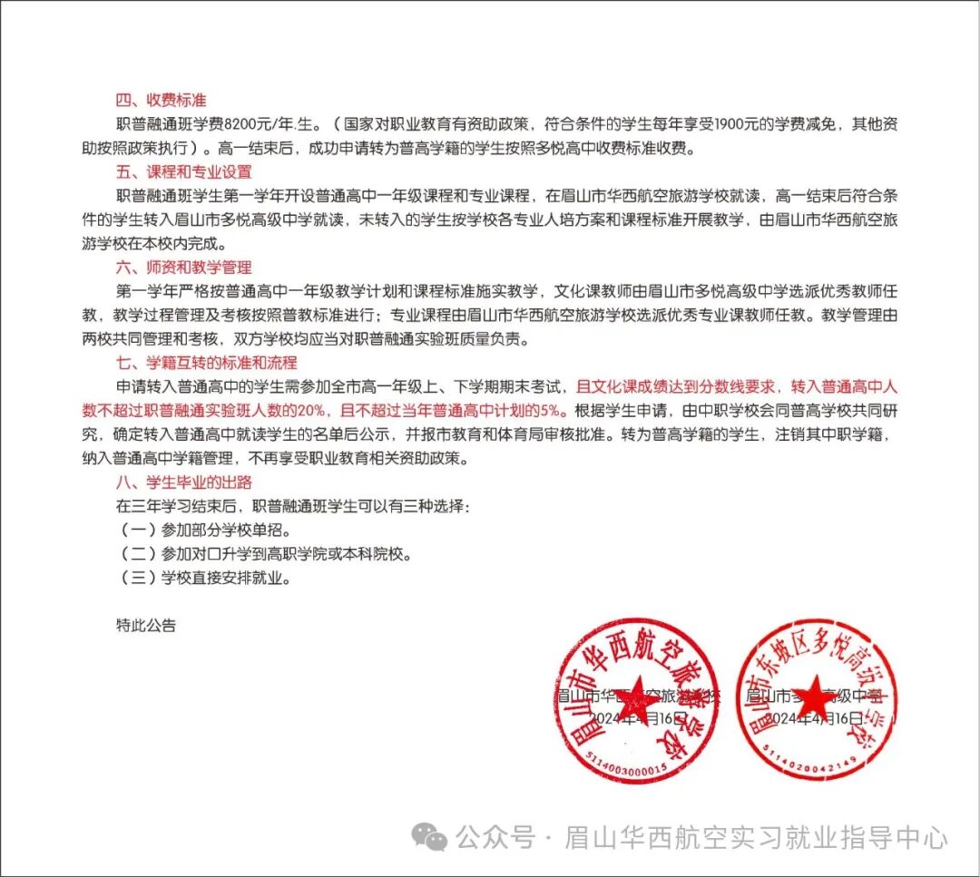 - 2025-10-11 眉山市华西航空旅游学校2024年招生简章
