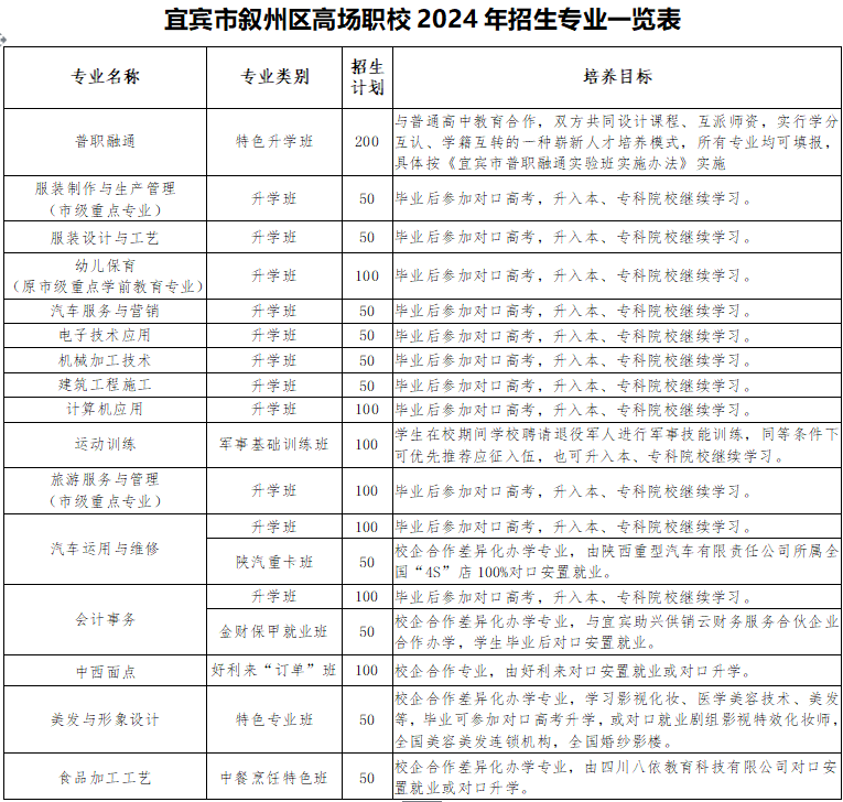 - 2023-12-29 宜宾叙州区高场职业技术学校2024年招生计划