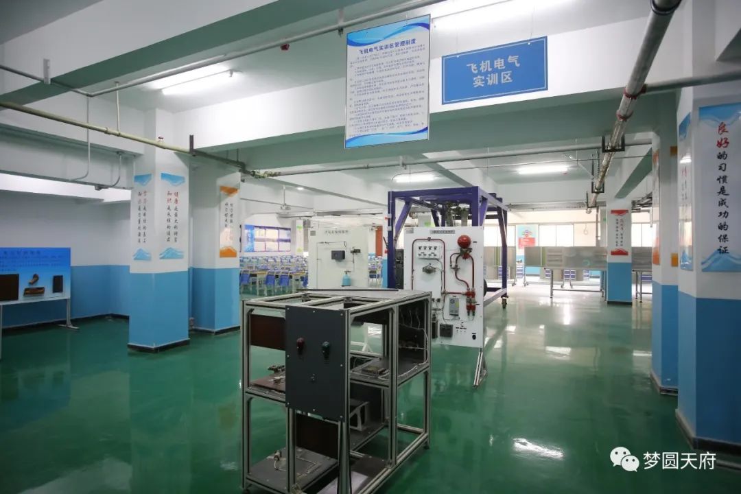 还有一流的无人机应用技术实训室、城市轨道交通运营管理实训室、飞机机电设备维修实训基地、高铁客运乘务实训室“天航复兴号”、计算机机房以及等。