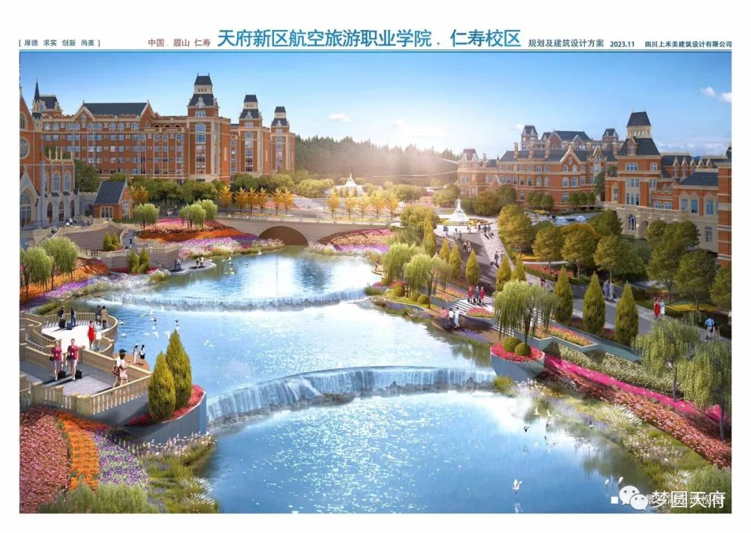 学院位于四川省天府新区剑南大道南延续航空大道中段168号,距离国家4A旅游景区--黄龙溪古镇3公里,在校人数14000余人。校园整体风貌博采欧美名校--哈佛、牛津、哥伦比亚大学之精华,风景优美、文化氛围浓郁,集景观学校、园林学校和影视拍摄基地特色于一体。