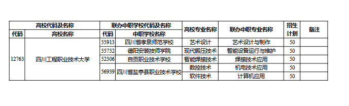 四川工程职业技术大学2024年五年制合作学校、招生专业及计划: