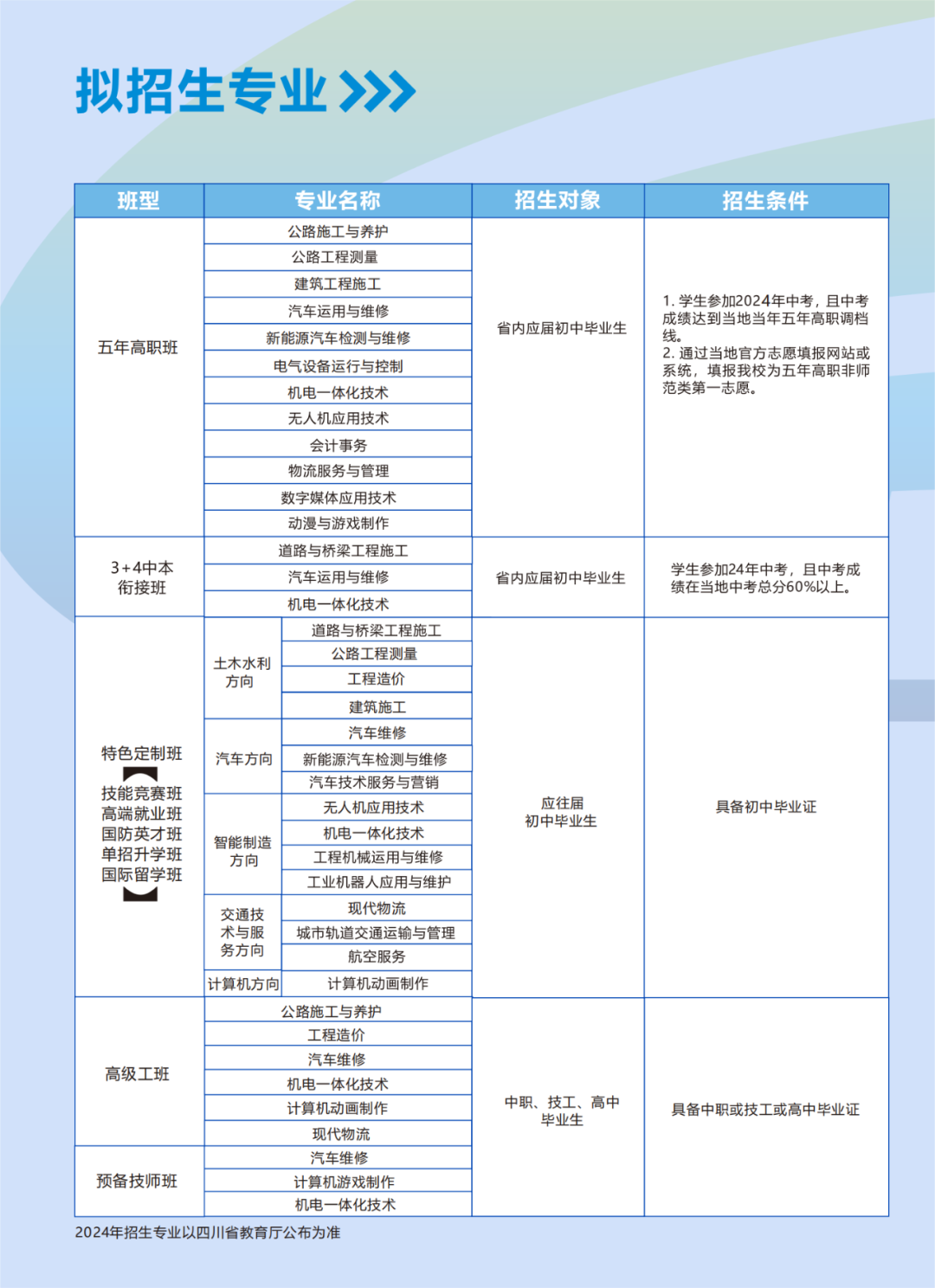 - 2025-10-15 四川交通运输职业学校五年高职班、3 4中本衔接班、特色定制班、高级技工班、预备技师班简介