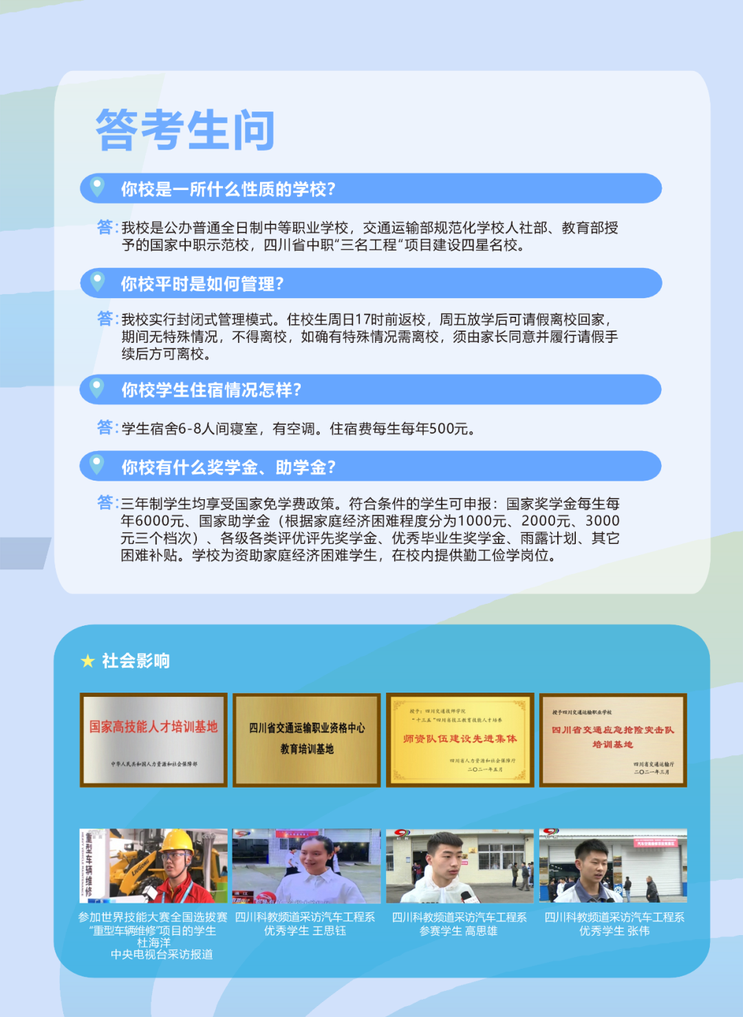 - 2021-03-30 【今日荐校】四川交通运输职业学校2020年招生指南
